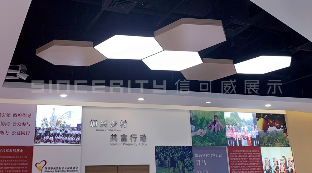 深圳(福田)振興鄉(xiāng)村消費(fèi)扶貧展示廳面積1300平米,包括“大國(guó)戰(zhàn)略”、“圳興有我”、“圳興有禮”、“圳興發(fā)布”、“圳興滋味”五大功能區(qū),整個(gè)展示館本著“節(jié)儉、樸實(shí)、不奢華”原則,通過圖文展版、實(shí)物展陳、模型展示、場(chǎng)景還原等多種形式,綜合運(yùn)用聲光電技術(shù),搭建“鄉(xiāng)村振興+創(chuàng)新性協(xié)作服務(wù)平臺(tái)。