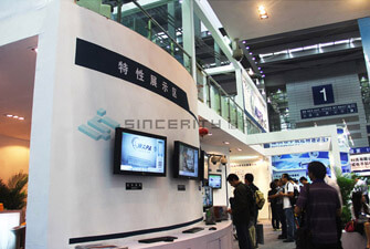 對展具展架的要求比較嚴格。一般都采用鋁合金標準展架,如八棱柱系列、球接系列、方柱系列、珩架系列以及各種插接系列等。如采用個性化設計的展具,對展具的結構、材料、性能都有要求,如材料必須經防火處理,限制使用塑料,限制使用危險化學品,限制有安全隱患結構的展具。