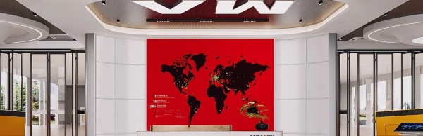 作為百年企業,LOGO的全球形象是統一的,很醒目的鮮紅底色配上黑色的全球生產基地地圖,讓人一下就感覺到企業的實力和全球戰略目標。